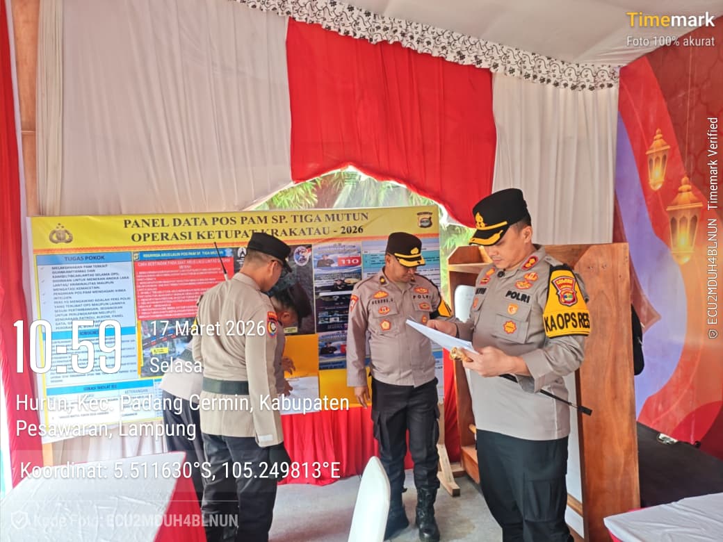 Dalam sidak tersebut, Kapolres yang juga menjabat sebagai Kepala Operasi Resor (Ka Opsres) Ketupat Krakatau 2026 itu mengecek langsung tiga Pos Pam strategis, yakni Pos Pam Simpang 3 Mutun, Pos Pam Pantai Mutun, dan Pos Pam Ketapang. Ketiga lokasi ini merupakan pintu masuk utama menuju destinasi wisata unggulan di Kabupaten Pesawaran yang diprediksi akan padat pengunjung.