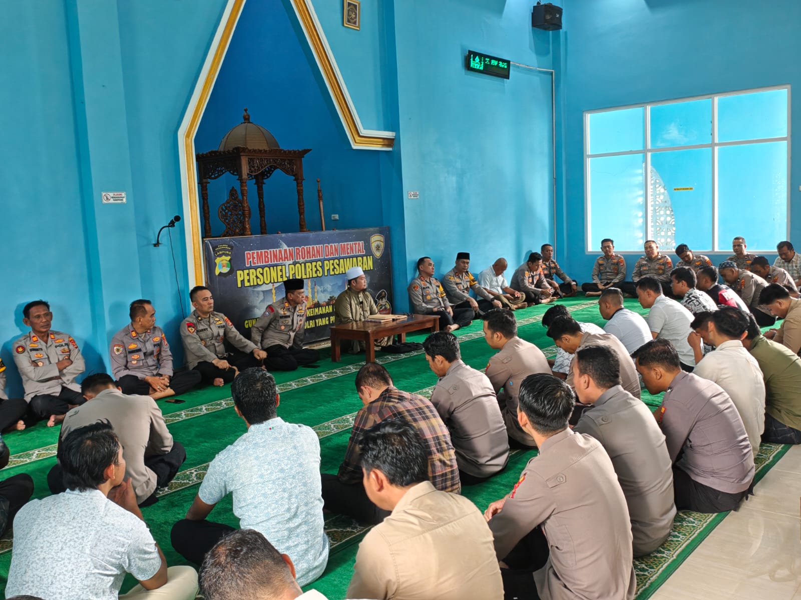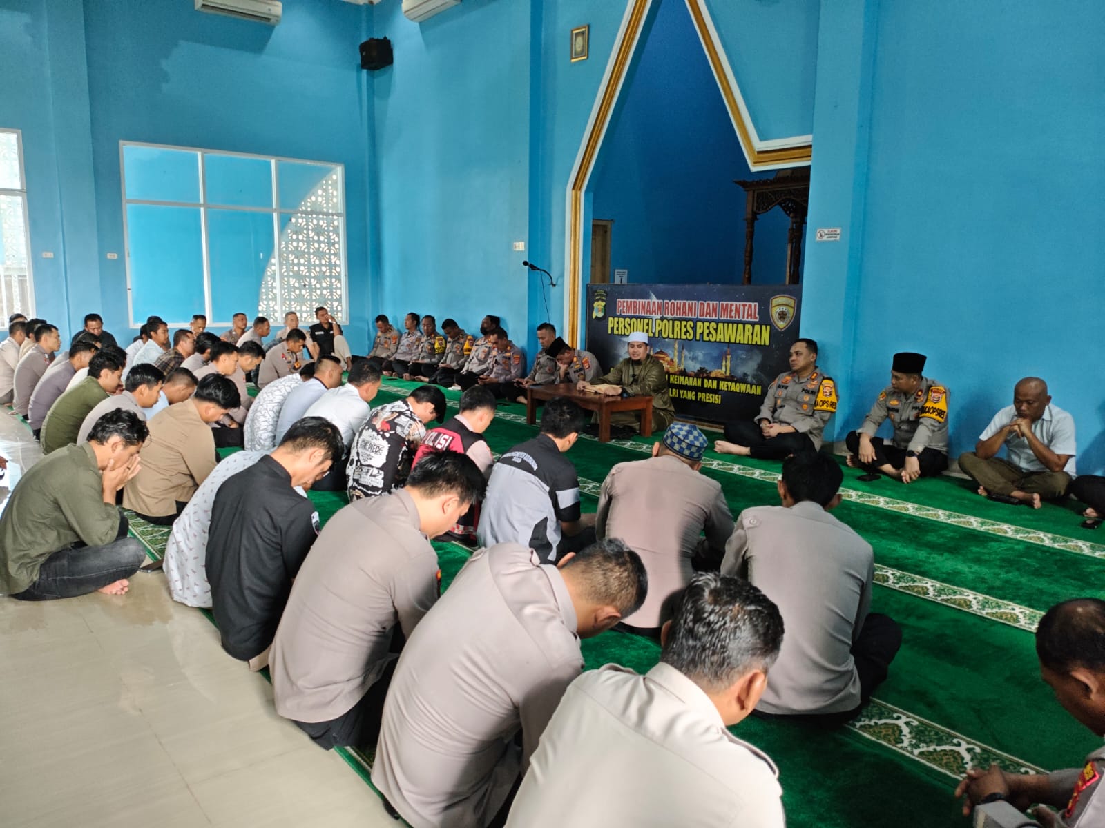 PESAWARAN, Orasipubliknews.co.id – Memasuki bulan suci Ramadhan 1447 H, Kepolisian Resor (Polres) Pesawaran menggelar kegiatan Pembinaan Rohani dan Mental (Binrohtal) di Masjid An-Nabawi Mapolres Pesawaran pada Kamis pagi (05/03/2026). Kegiatan yang berlangsung khidmat ini dipimpin langsung oleh Kapolres Pesawaran, AKBP Alvie Granito Panditha, S.I.K., M.S.S., didampingi para Pejabat Utama (PJU) serta diikuti seluruh personel Polri dan Aparatur Sipil Negara (ASN) Polres Pesawaran yang beragama Islam.