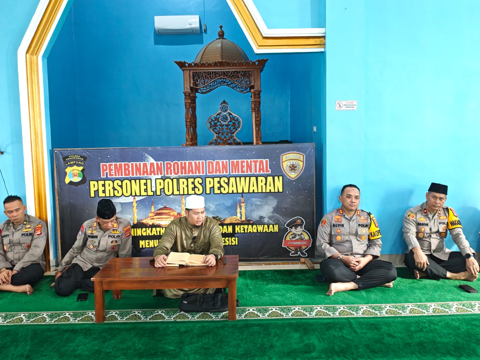 PESAWARAN, Orasipubliknews.co.id – Memasuki bulan suci Ramadhan 1447 H, Kepolisian Resor (Polres) Pesawaran menggelar kegiatan Pembinaan Rohani dan Mental (Binrohtal) di Masjid An-Nabawi Mapolres Pesawaran pada Kamis pagi (05/03/2026). Kegiatan yang berlangsung khidmat ini dipimpin langsung oleh Kapolres Pesawaran, AKBP Alvie Granito Panditha, S.I.K., M.S.S., didampingi para Pejabat Utama (PJU) serta diikuti seluruh personel Polri dan Aparatur Sipil Negara (ASN) Polres Pesawaran yang beragama Islam.