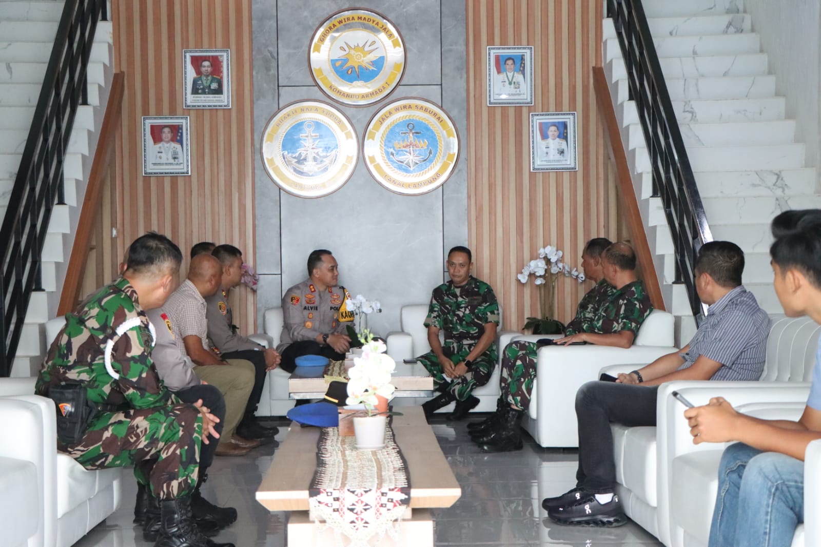 Didampingi Kasat Reskrim, Kasat Intelkam, Kasat Narkoba, Kasi Propam, serta Kapolsek Padang Cermin, Kapolres memulai rangkaian kunjungan ke Markas Komando Lanal Lampung. Kedatangan rombongan Polres Pesawaran disambut hangat oleh Komandan Lanal Lampung Kolonel Laut (P) Krido Satriyo Utomo, S.E.,M.Tr.Hanla., beserta para pejabat utama dalam suasana penuh keakraban.